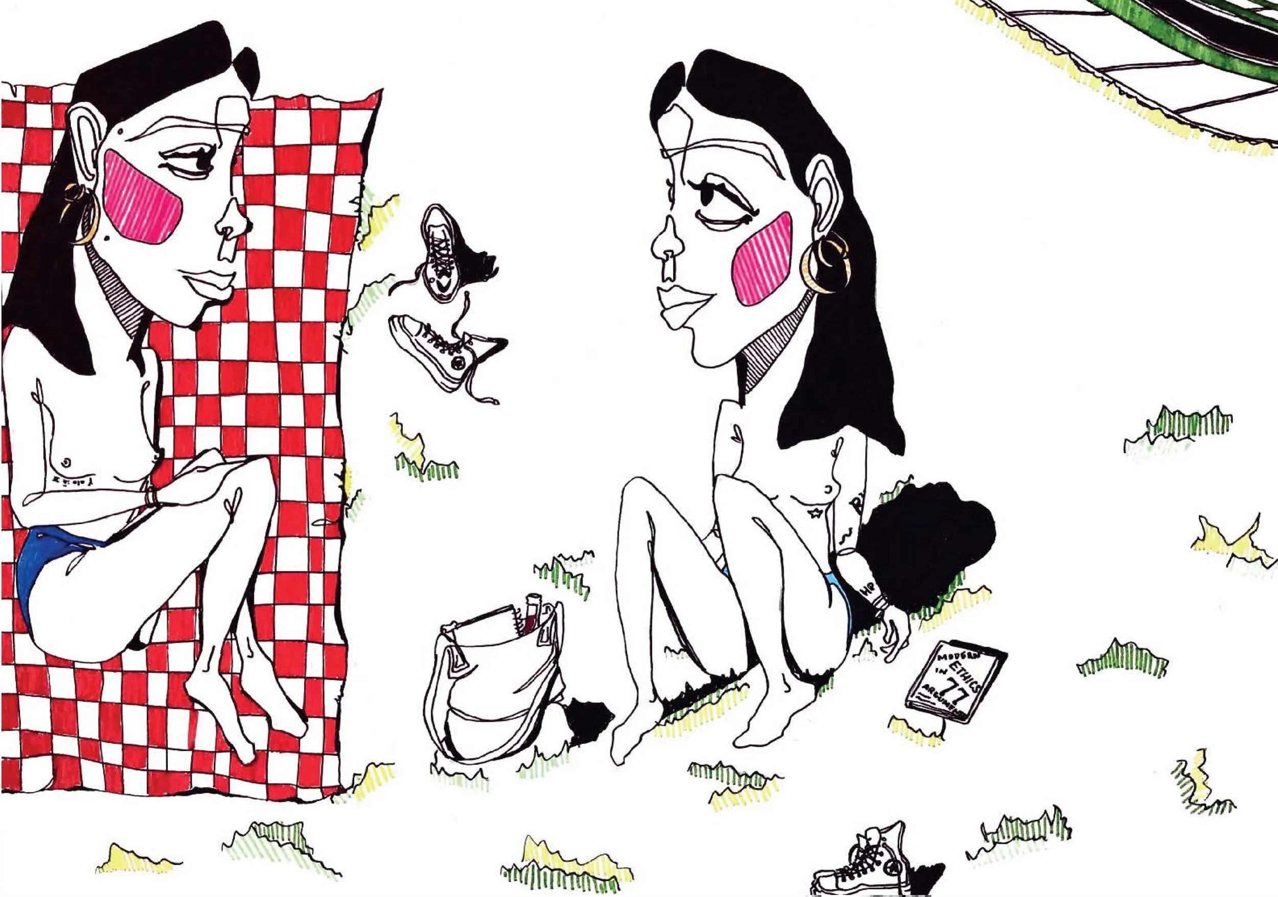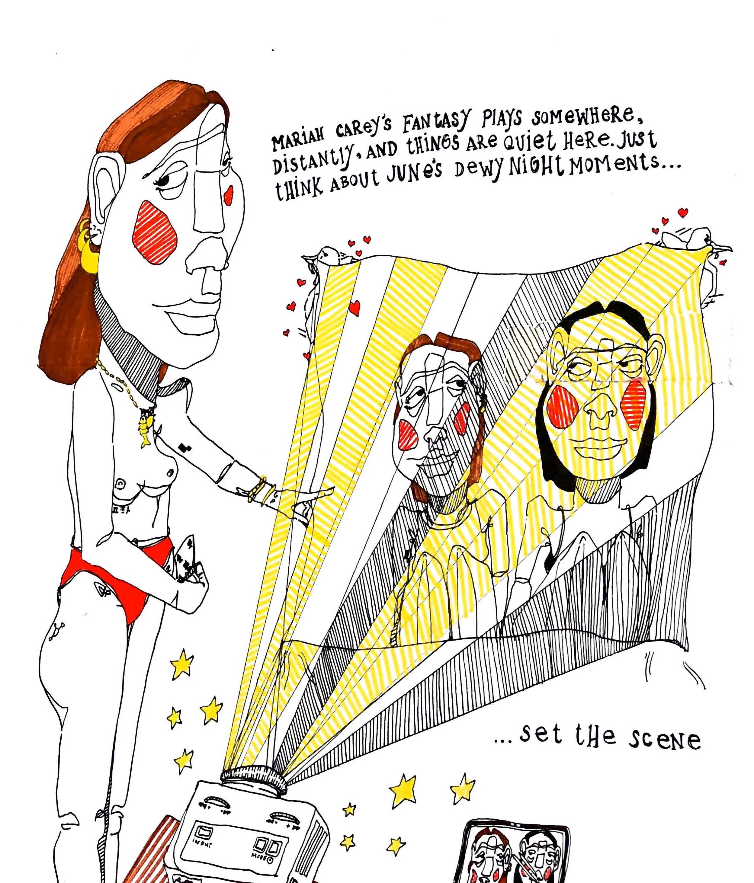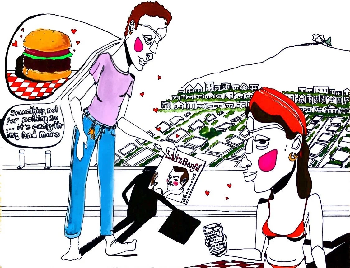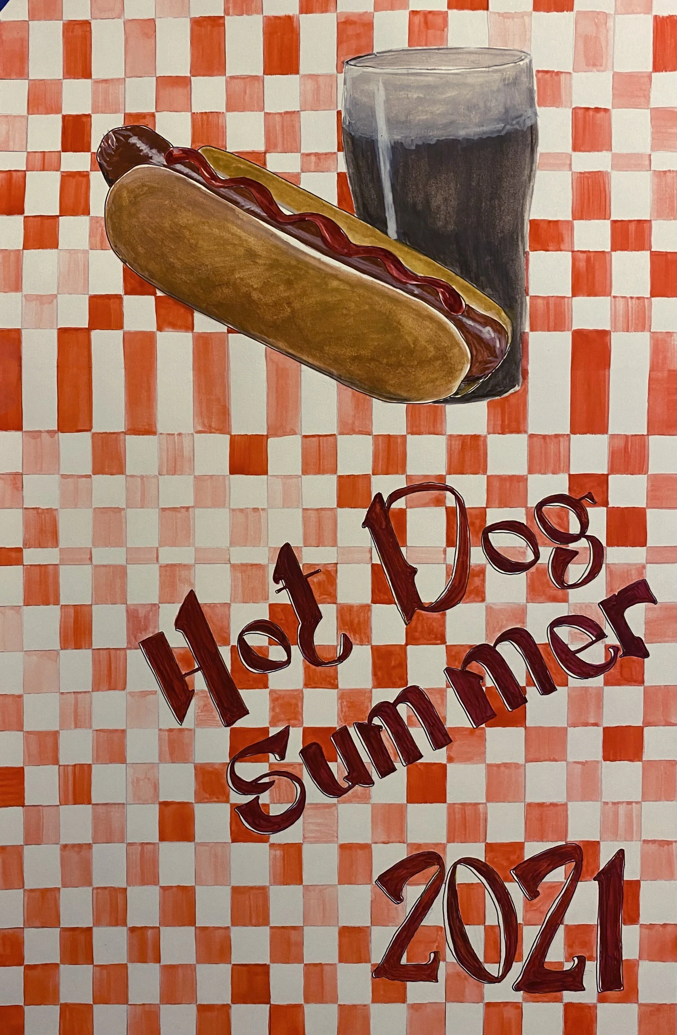 hot dog summer, 2021, 9x11in, gouache and ink on paper
