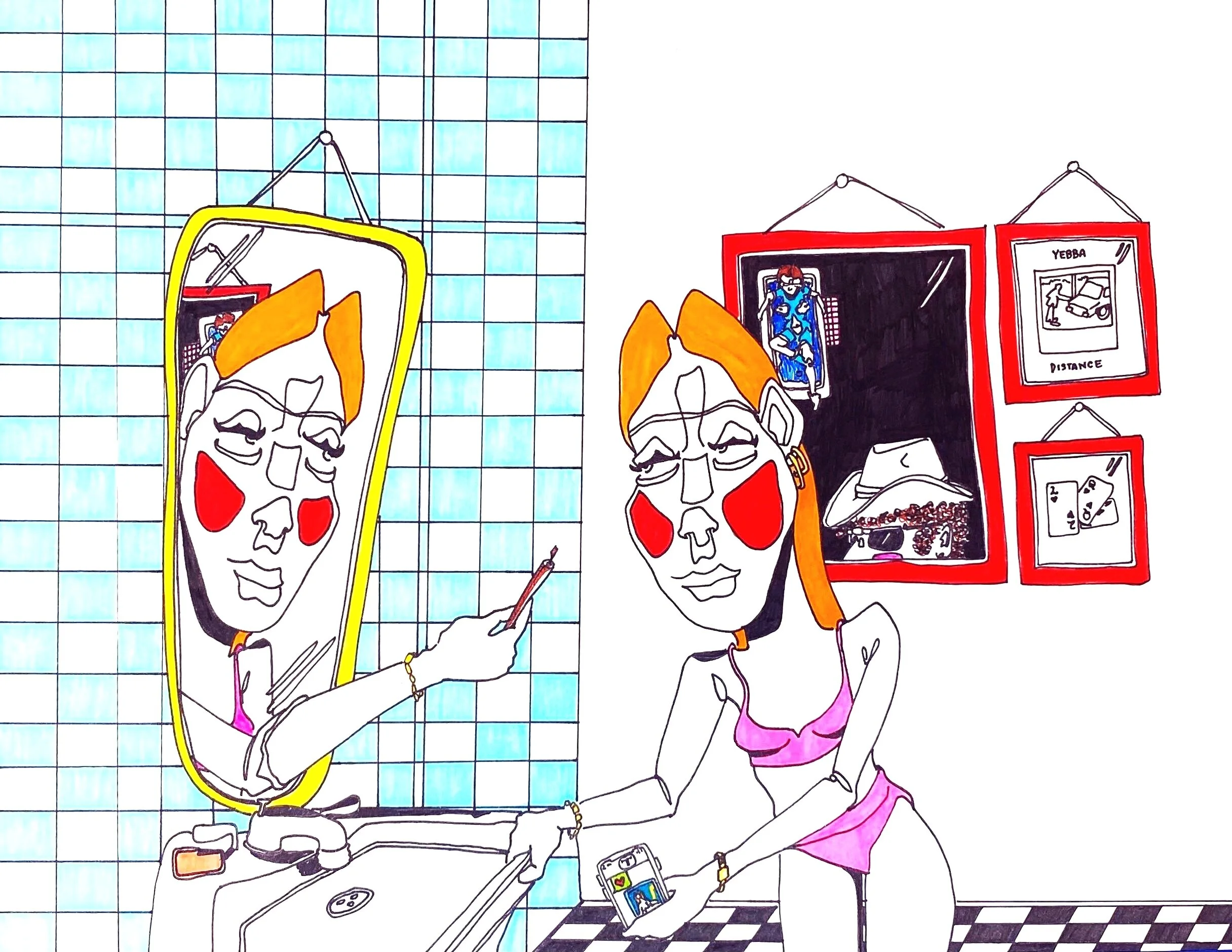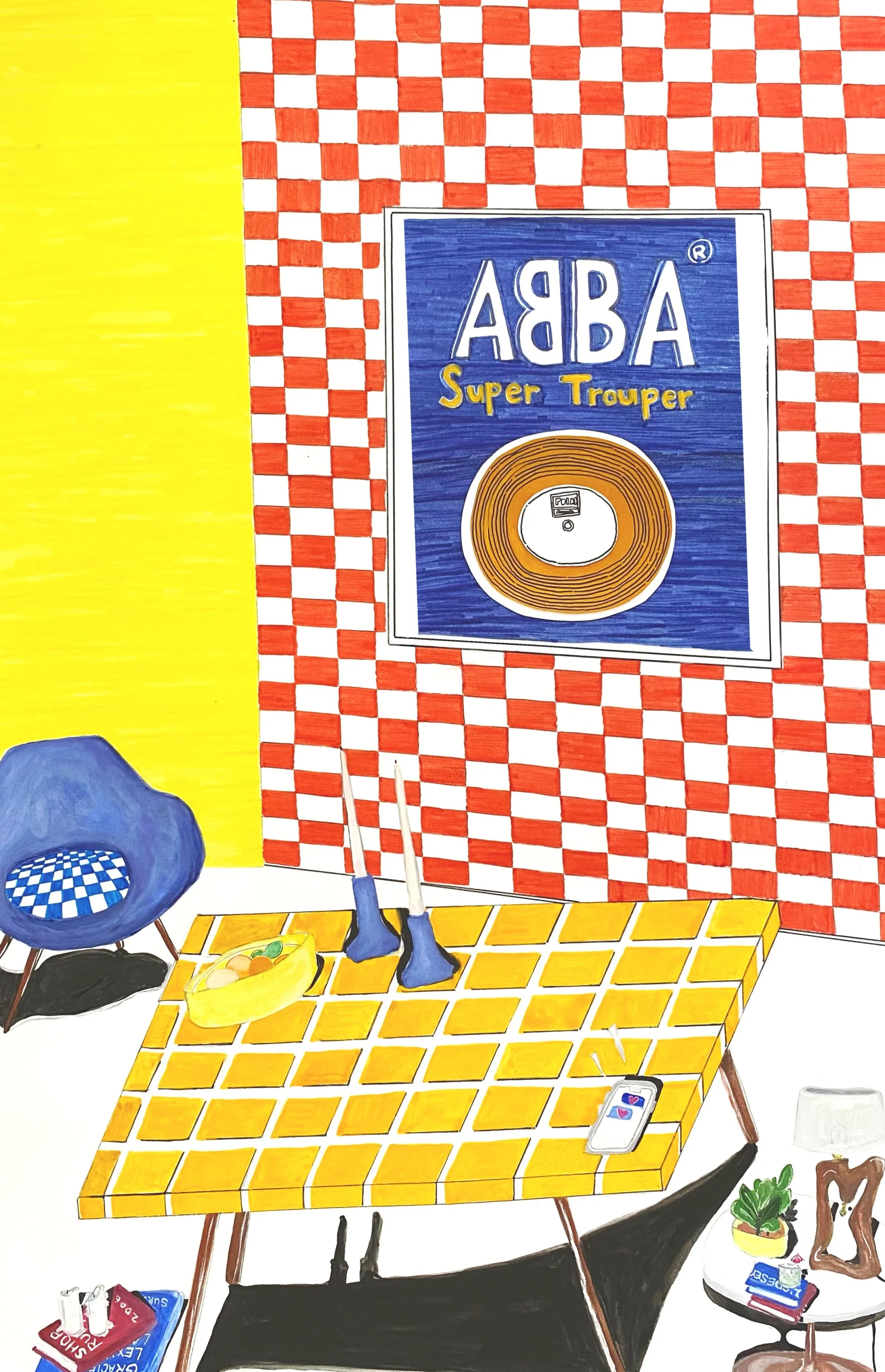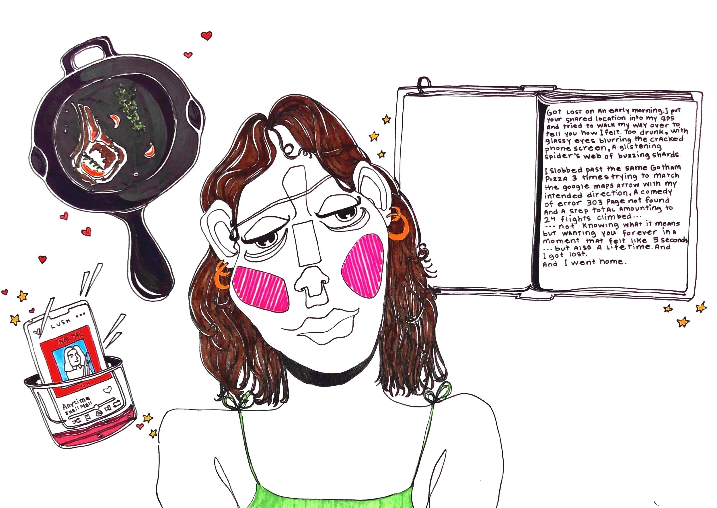 hot dog summer, 2021, 9x11in, gouache and ink on paper